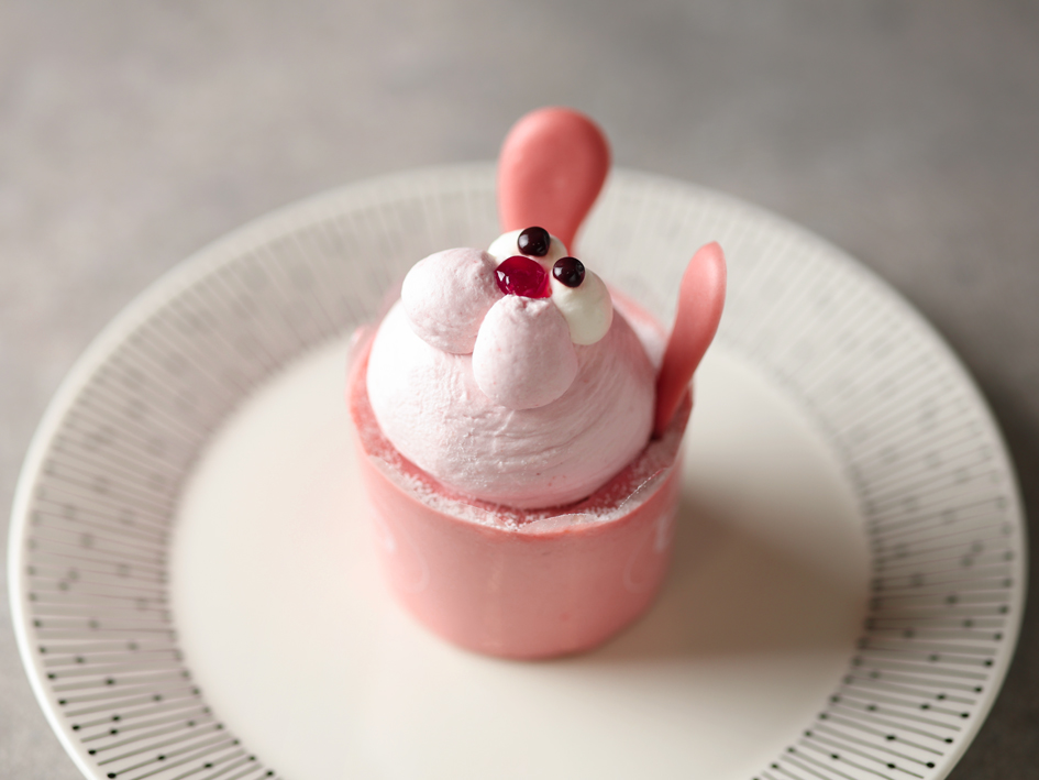 ひなまつり限定のかわいいうさぎケーキ。軽やかな苺ムースにシロップ漬け苺とスポンジを合わせました。お酒不使用のケーキです。